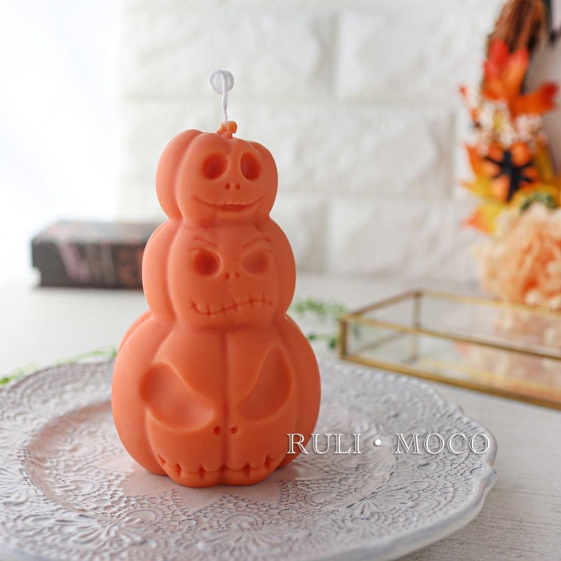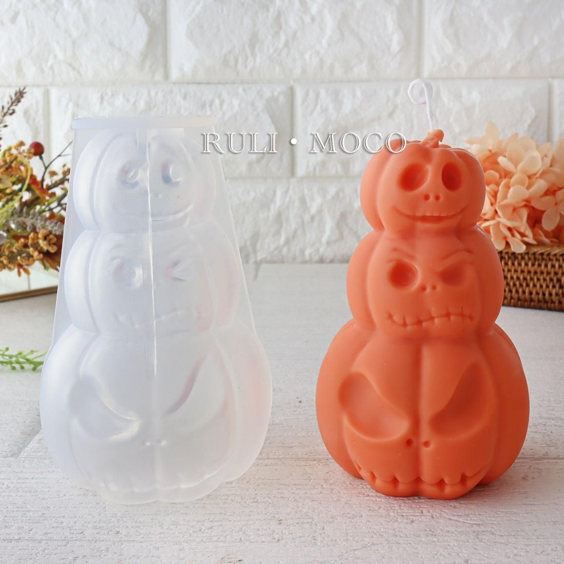 3つのカボチャが重なったキャンドル向けシリコンモールド。